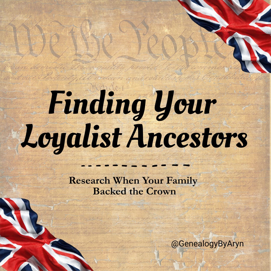If your ancestors were in the American Colonies before the Revolution, and you have never been able to locate documents telling you about their involvement in the war – your ancestor might’ve been on the losing side of the American Revolution.